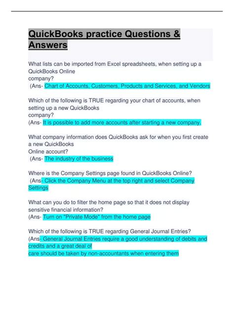 Read Online quickbooks sample questions Epub